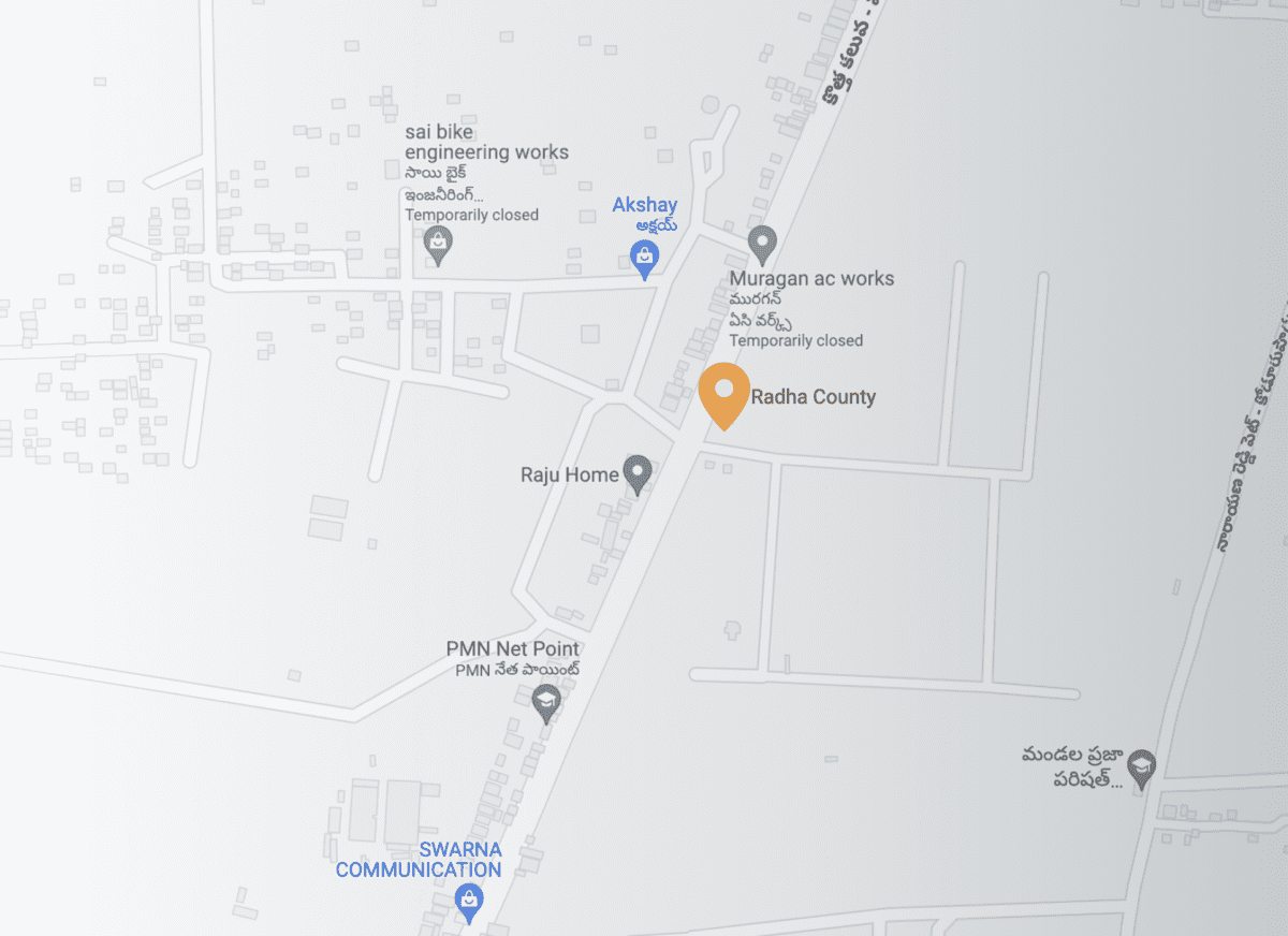 Just 10 mins away from the National Highway 16, Radha County is connected to the high-value locations of the city. From banks to malls to schools to hospitals, all major facilities are in close proximity. Surrounded by beaches and bird sanctuaries, Radha County is an absolute delight for anyone looking forward to spending their life in peace and luxury.